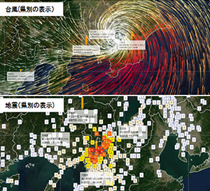 あいおいニッセイ同和損保は、国立大学法人横浜国立大学・エーオンベンフィールドジャパン株式会社と共同研究を行い、台風・地震・豪雨による被災建物棟数をリアルタイムで予測し市区町村毎に地図上に表示する世界初のウェブサイト「cmap.dev(シーマップ)」を開設しました。被災規模の早期把握や迅速な救助・支援活動への貢献を目指し、無償で一般公開しています。今後も自然災害を24時間365日監視し、地域の皆様に役立つ情報提供に取り組んでいきます。
